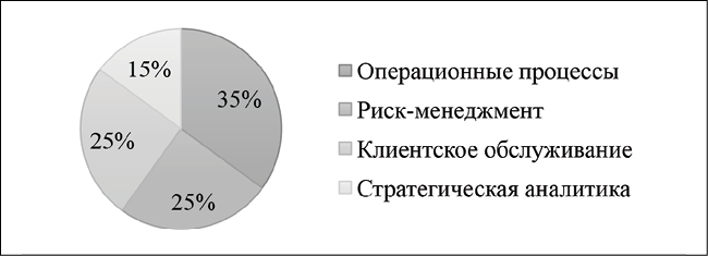 Структура применения ИИ-технологий по функциональным областям финансового посредничества Источник: составлено автором на основе [11, 12]