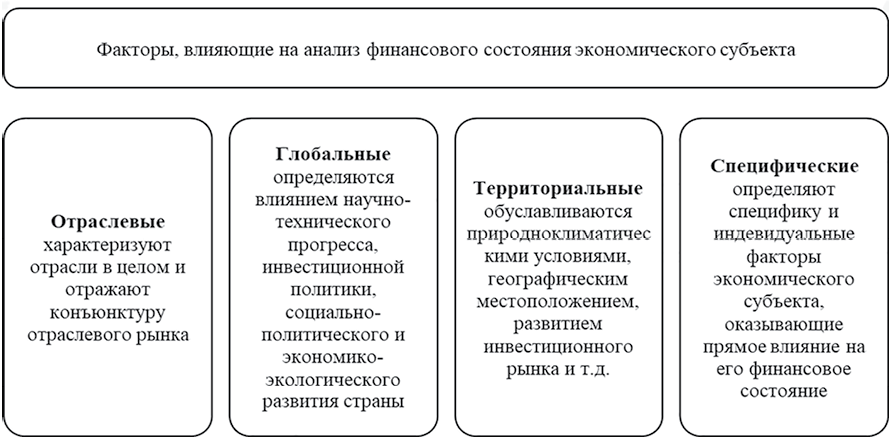 Рис. 2. Факторы, влияющие на анализ финансового состояния экономического субъекта Источник: с дополнениями авторов на основе [3]