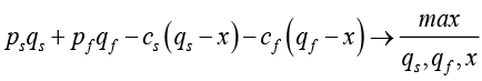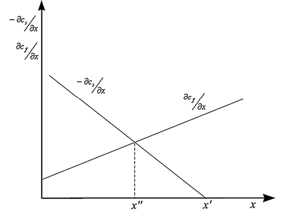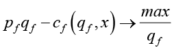 где, cs – общие производственные затраты металлургического завода, cf – количественная величина, соответствующая общей производственной издержке рыбного хозяйства, x – количественная величина, соответствующая объёму загрязнения реки.