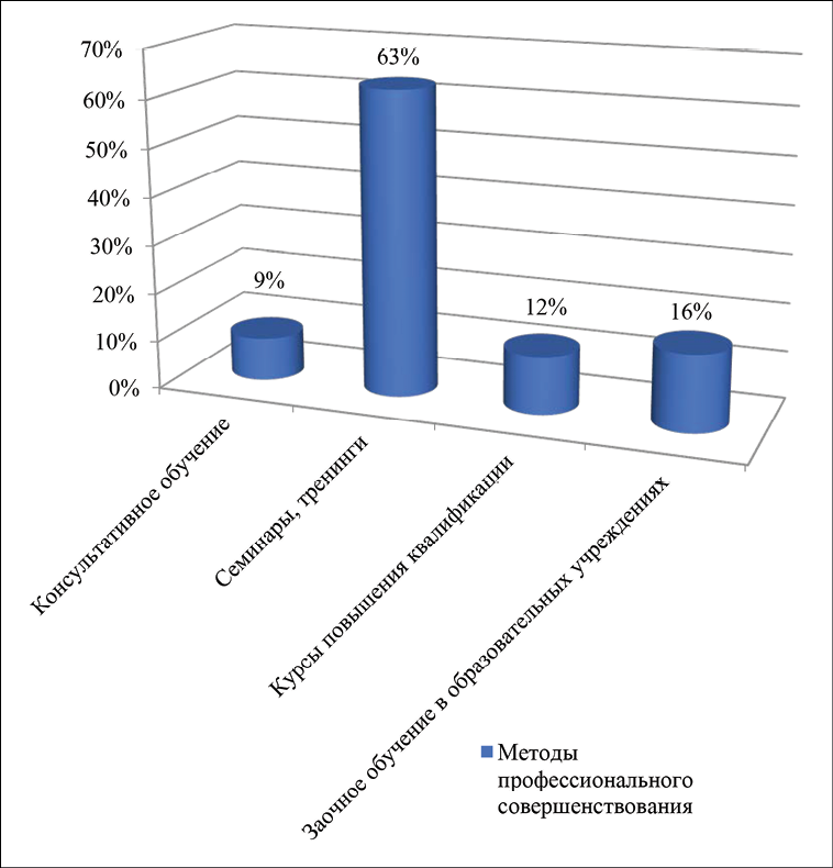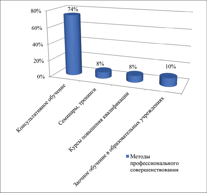 Рис. 2. Итоги анкетирования «Предпочтительные методы профессионального совершенствования для категорий персонала ''руководители'' и ''специалисты''» Источник: составлено авторами