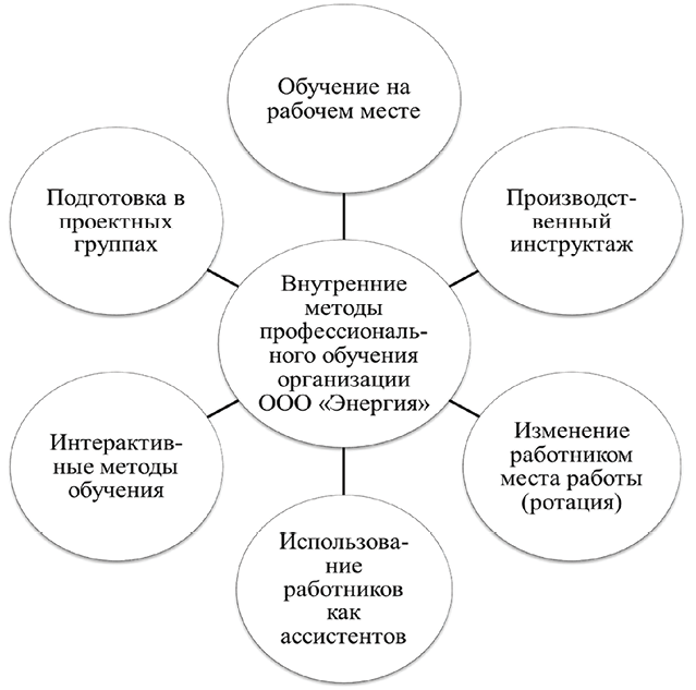 Сведения о практикуемых в ООО «Энергия» внутренних методах профессионального обучения представлены на рисунке 4.