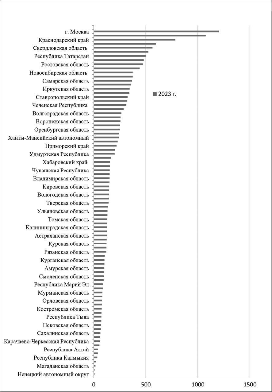 Рис. 1. Валовой региональный продукт в 2022 г., млн руб. Примечание: составлено автором на основе данных Федеральной службы государственной статистики [1]