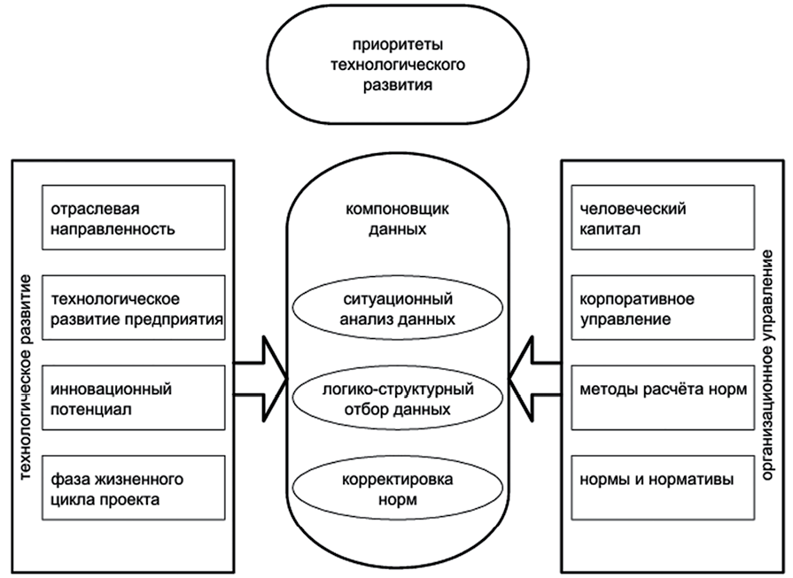 Противоречия технологического развития отражаются на всех уровнях экономики и подтверждаются низкими темпами реализации инновационных процессов [1]. Нормирование научно-технического творчества как метод повышения производительности труда, обеспечения эффективности расходования ресурсов на ранних этапах проектирования в новых условиях развития информационной среды, позволит решать задачи сглаживания противоречий организационного и технологического на предприятиях, особенно высокотехнологического сектора.