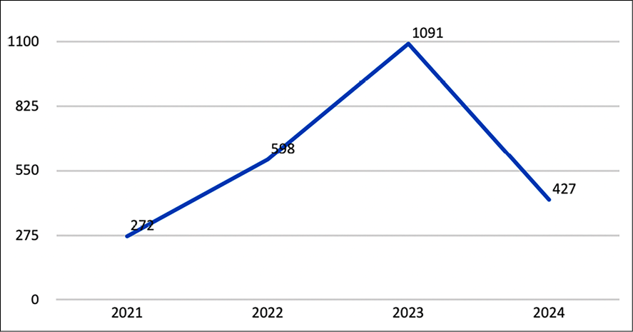 Динамика убытков от погибших посевов за 2021-2024 гг., млн руб. Источник: разработано авторами