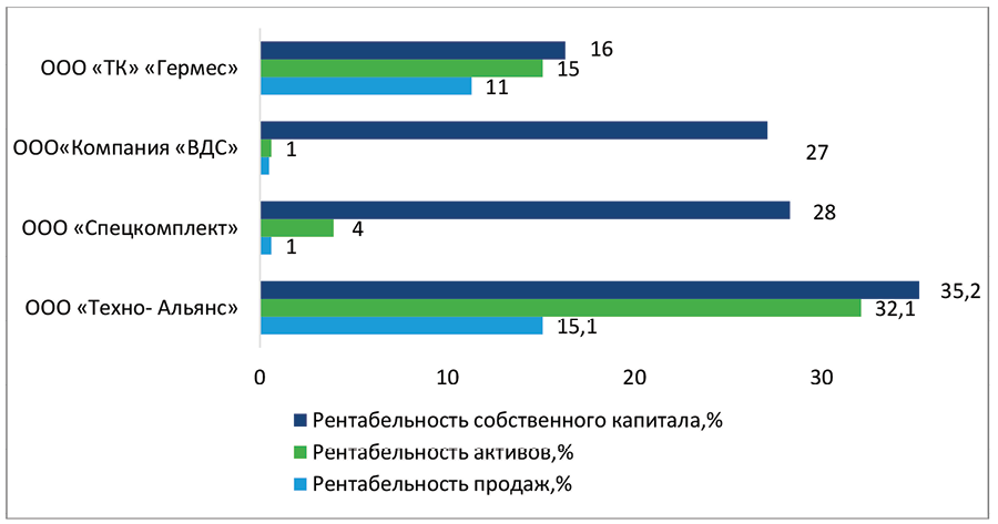 Рис. 1. Конкурентные позиции ООО «Техно-Альянс» по показателям рентабельности Источник: разработано авторами по материалам [16]
