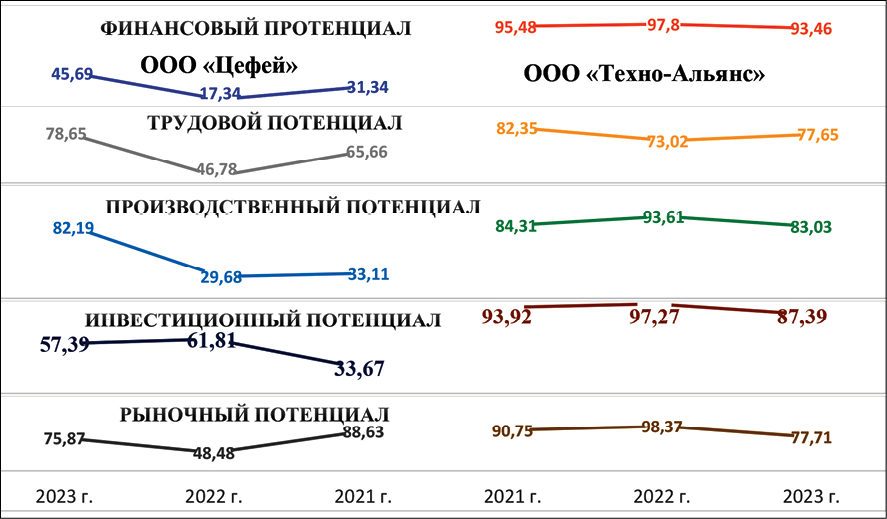 Рис. 3. Сравнение экономического потенциала ООО «Техно-Альянс» с ООО «Цефей» Источник: разработано авторами по материалам [16]