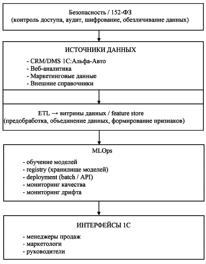 Схема интеграции ML-модулей в систему 1С:Альфа-Авто Источник: составлено авторами