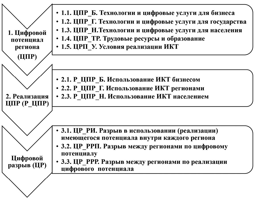 Показатели оценки цифровой инклюзии регионов Источник: авторская разработка по результатам исследований