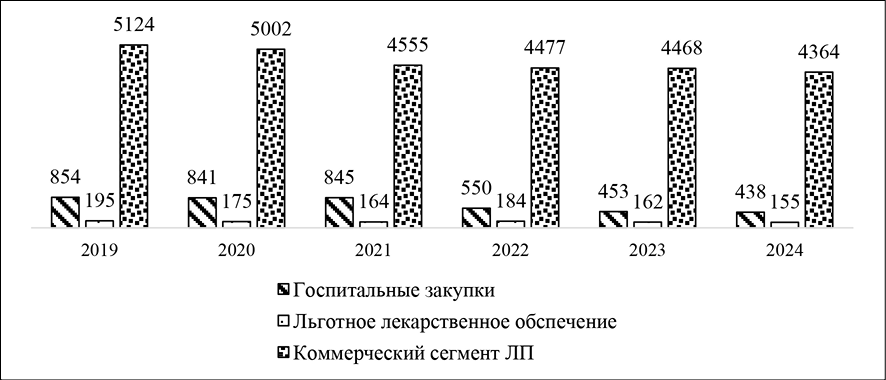 Цель исследования – оценить основные тенденции развития отечественного фармацевтического рынка в условиях усиления санкционной политики на основе ретроспективного анализа данных за период 2019-2024 гг.
