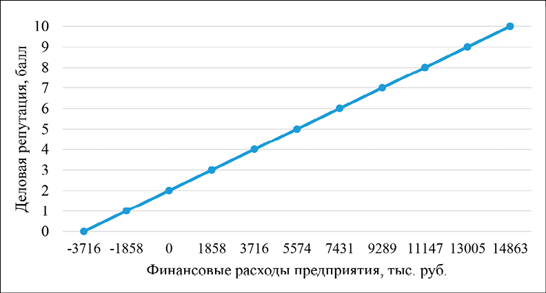 Отрицательные финансовые расходы означают, что предприятие сможет получить финансовый доход, разместив высвобожденные финансовые ресурсы в инструментах фондового рынка. То есть поставщики предоставят дополнительные ресурсы, а значит, у предприятия будет больше свободного собственного капитала (рисунок 2). Ухудшение репутации приведет к росту финансовых расходов. Что же касается репутационных рисков, связанных с взаимодействием с банками, то они являются низкими, ведь предприятие не использовало в течение последних двух лет заемные средства. Поэтому такая сторона репутации не имеет существенного влияния.
