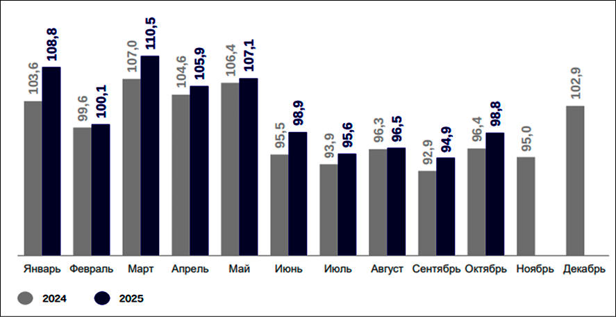 Рис. 3. Производство куриных яиц 2024-2025 гг. Примечание: составлена авторами на основе источника [15]